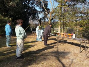 神主さんをお招きし公園関係者13名で安全祈願祭を行いました。毎年凍えるような寒さの中での祈願祭…。今年は珍しく暖かい中での開催となりました。公園を訪れる来園者や、日々公園のために作業をしているスタッフがこの1年ケガや事故に見舞われることのないようにしっかりお祓いしていただきましたよ~😊✨