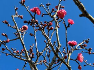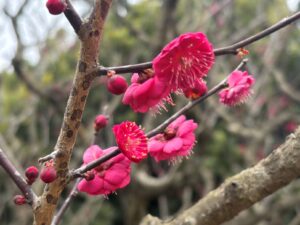 紅梅は7分咲き・白梅は5分咲きまでになりました。