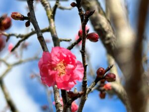 紅梅は5分咲き・河津桜もだいぶ色づいてきましたがまだ1分咲きのようです。