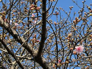 レストハウス横、河津桜の蕾もだいぶ膨らんできて10輪ほど咲いていましたよ😊