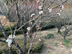 なごみの庭の斜面では先日に比べ、スイセン・紅梅・白梅の開花が少しずつ進んでいるようです🌸