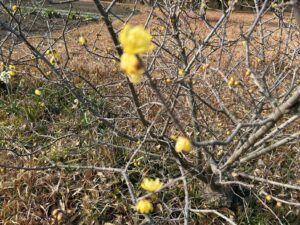 暮らしの庭の蝋梅(ロウバイ)は可愛らしい黄色の花びらを付けており、そっと顔を近づけてみるとほのかに甘い香りがしました😊✨