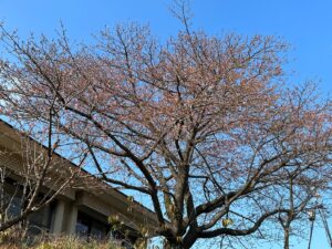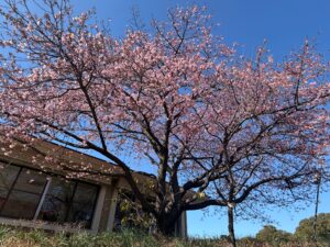 レストハウス横の大きな河津桜が5~6輪咲きましたので「開花宣言」をいたします。